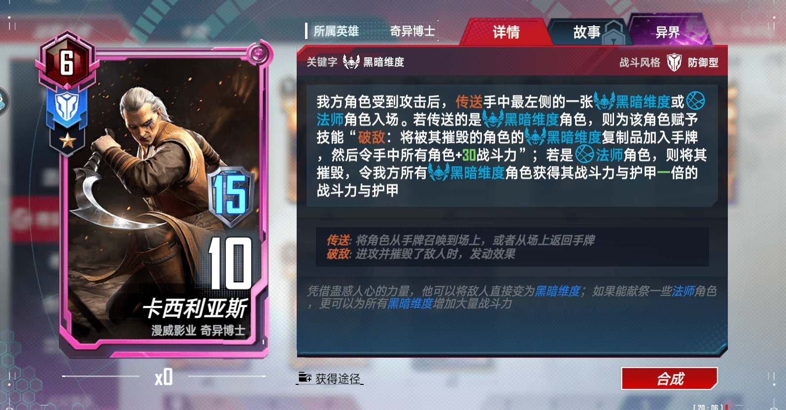 注意:异界卢克凯奇不是S34的毒瘤卡异界铁拳,异界凯奇这张卡的使用有待开发,需要每回合给自己的卡池大量的增加任务卡,然而即便如此,每回合加的攻击和护甲也不甚可观,一句话:得加强。