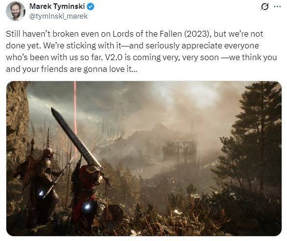 近日CI Games总裁Marek Tymiński发推文称:“《堕落之主》至今仍未回本,但我们的计划远未完成,我们会坚持下去。衷心感谢所有一路陪伴我们的玩家。2.0版重大更新即将上线——相信你和你的朋友们一定会爱上它……”