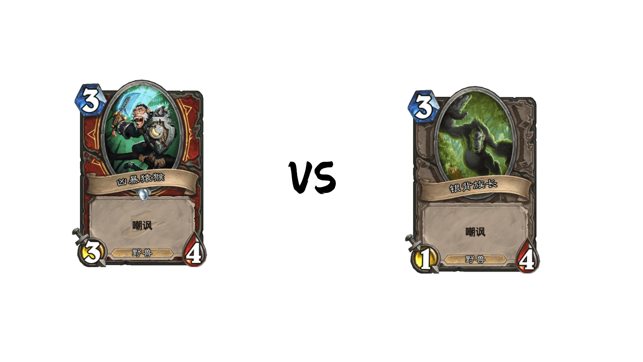 拥有相同费用相同种族的两个嘲讽随从,凶暴猿猴竟然比银背族长多两点攻击力,绝对完爆!