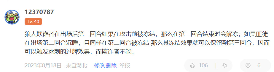 甚至这样有概率无法攻击的效果会让对手放松警惕,从而不去处理中暑的匪徒,让中暑的匪徒生存率高于狼人欺诈者。