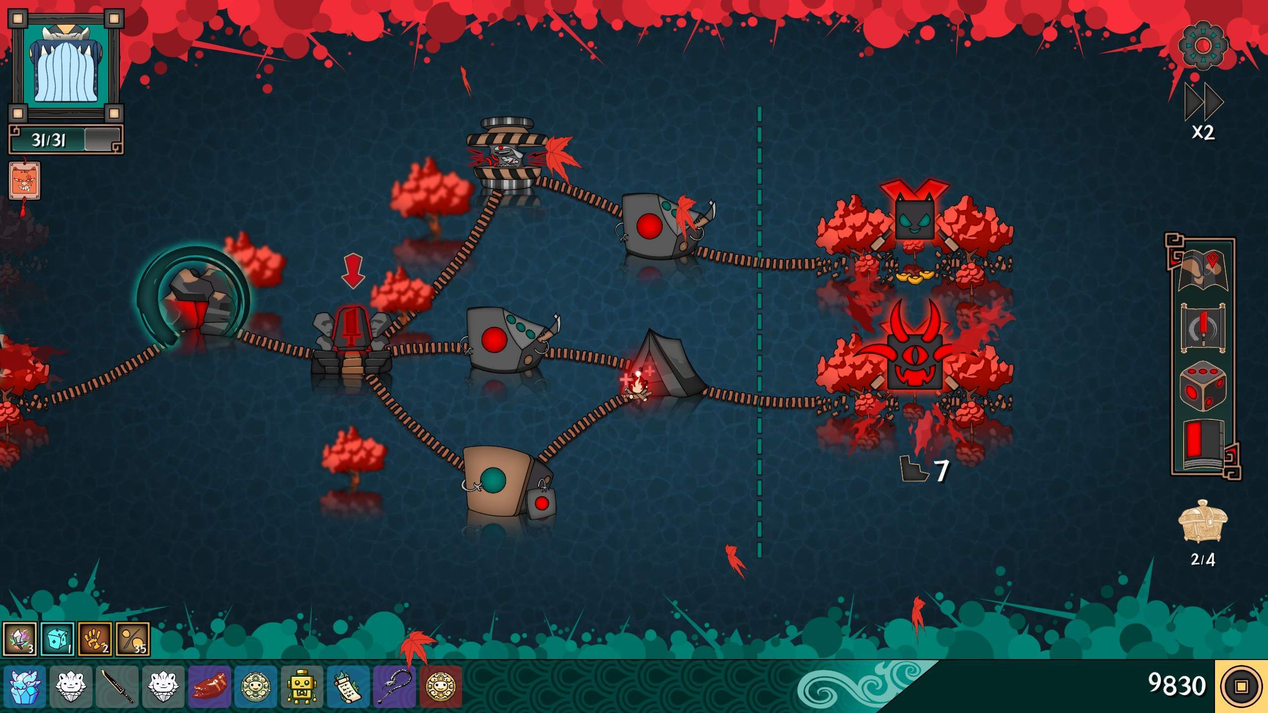 作为一款比较标准的爬塔肉鸽游戏,游戏在地图上进行了轻量化的调整,不再要求玩家规划长期路线,而是将地图拆分成了固定的战斗-成长-战斗的形式。游戏中,两场战斗之间会有一定数量的强化事件供玩家提升,大部分地地图位置都包含了一个金币格子和一个遗物格子,即精英战斗。战胜精英敌人会固定获得其携带的遗物,与角色的设计相同,敌人的“恩宠”也与玩家完全对等,算是实际上省略了怪物的设计。