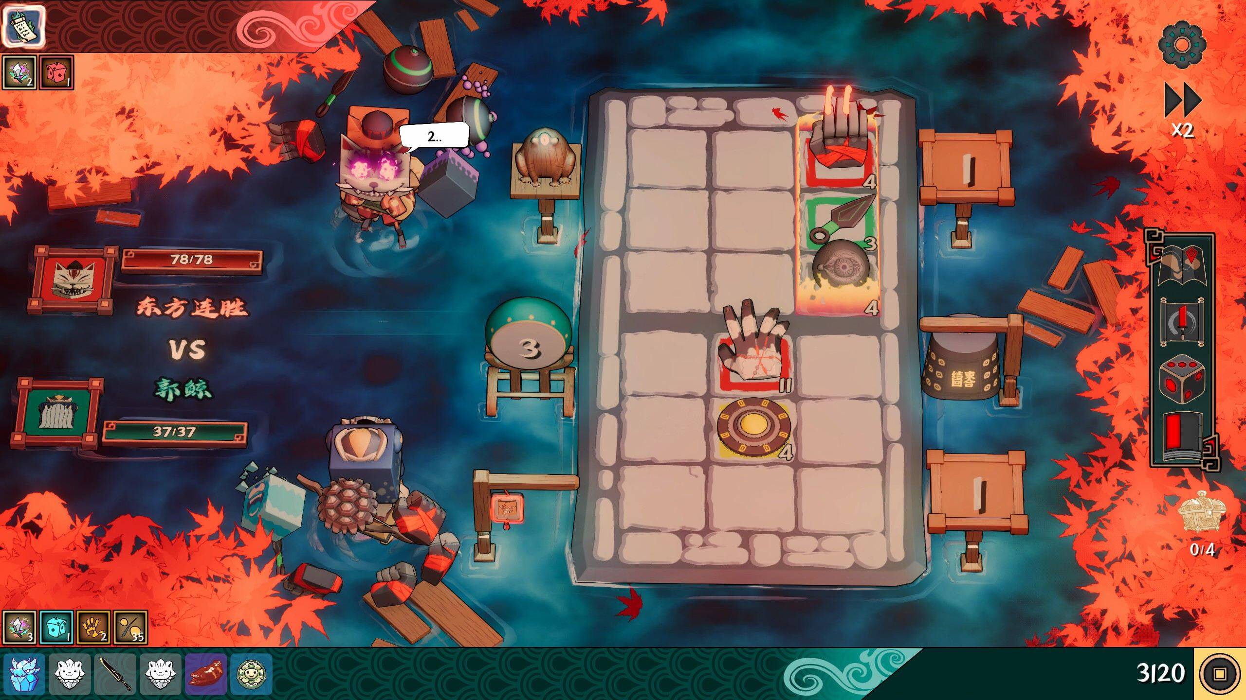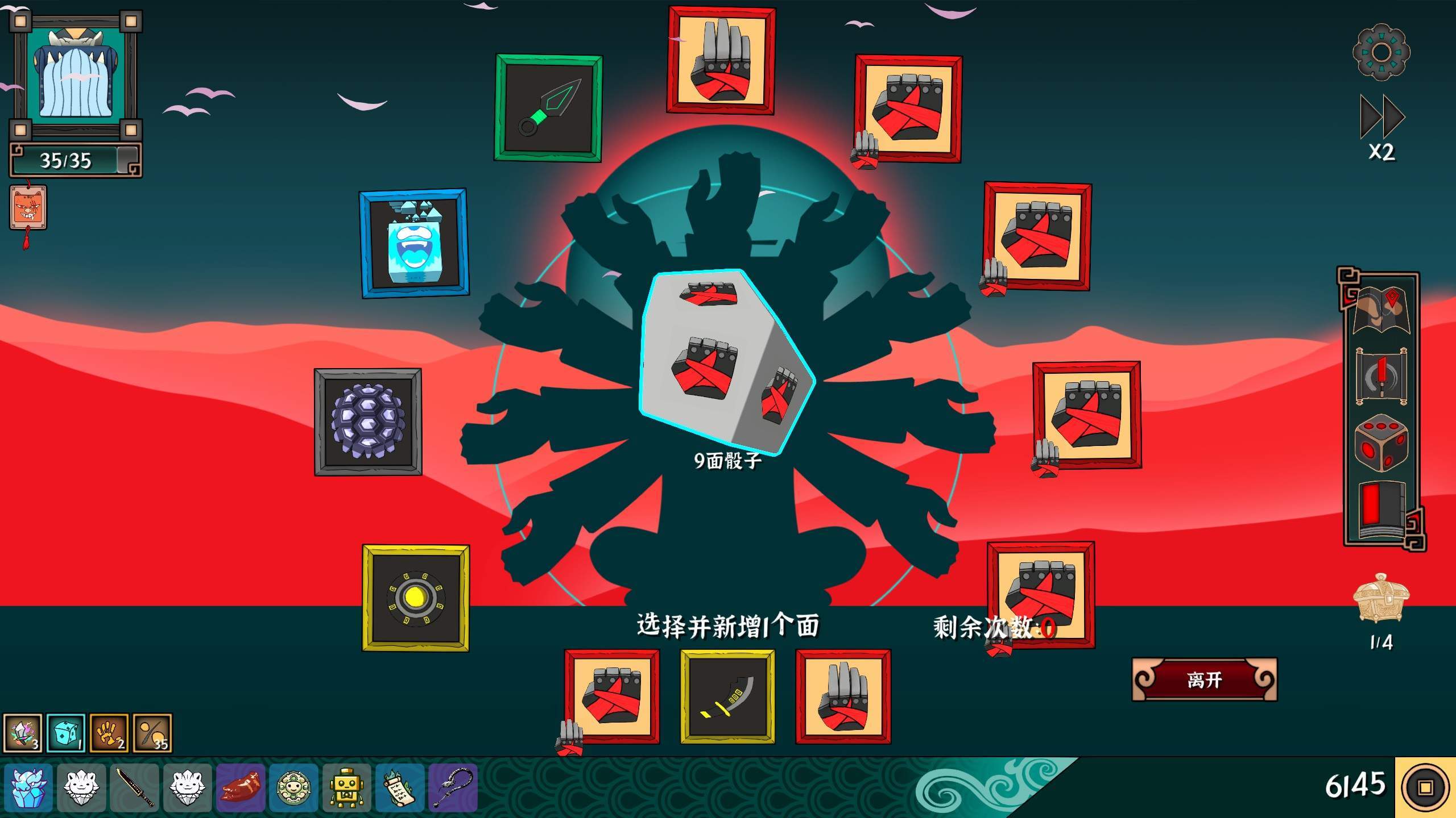 作为一款轻度策略肉鸽游戏,本作在基本规则设置上门槛极低。玩家每个回合进行一定次数(大部分时候是1次)抛骰,然后把技能丢在棋盘上,只要凑出一个竖列3个技能就能给对手来一发狠的。或许是为了让玩家抽的快,抽的爽,本作的最大画面加速甚至狠狠提升到了6倍,很多时候骰子成型就能狠狠连续抽打敌人,打出爽快连招。而在这个类似于OX棋的玩法上,游戏适当加入了技能伤害、属性克制等内容,塑造出了整个战斗系统。