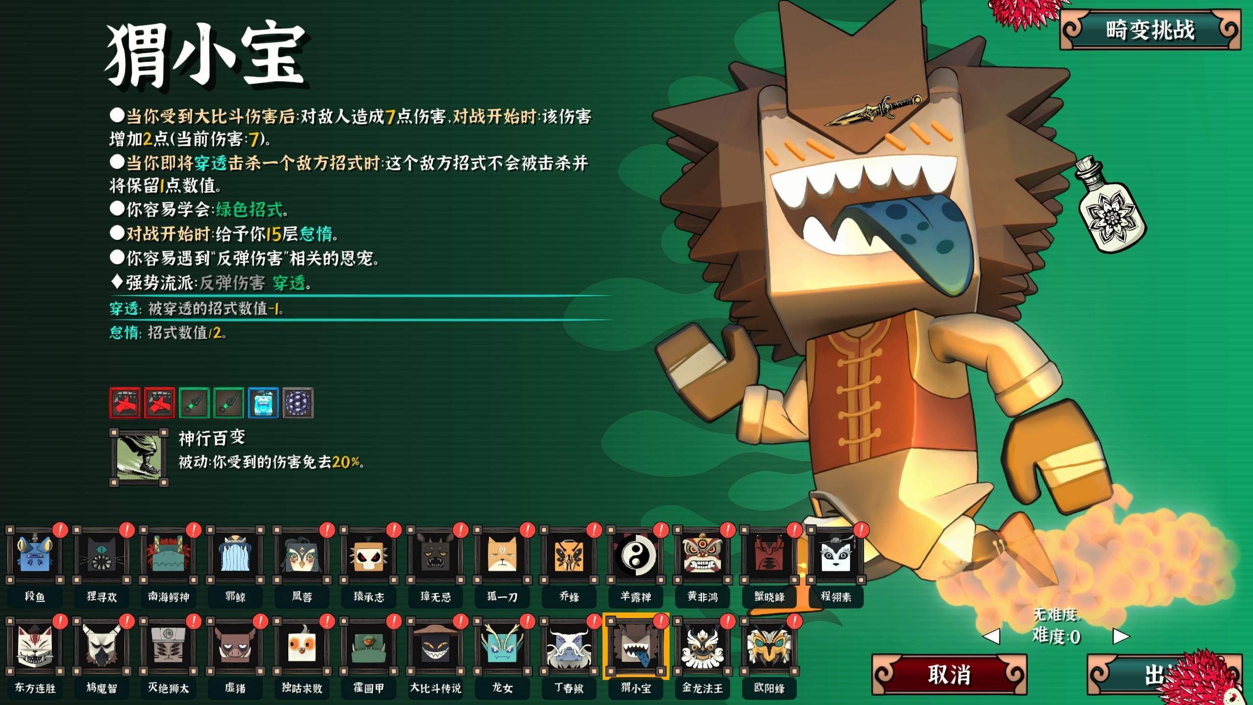 而除了骰子技能之外,玩家易容的角色也会提供额外的被动技能和斗技偏好,足足两排的角色似乎暗示了同等数量的基本流派,角色的技能会深刻的影响对局。至于这个名字,只能说制作人武侠小说是真没少看啊…另外,游戏中的敌人和玩家完全对等,即遇到的敌人具有的技能和玩家使用的角色技能完全相同。