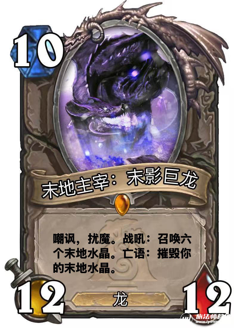 末影巨龙:嘲讽,扰魔。战吼:召唤 六个末地水晶。亡语:摧毁你的末地水晶。