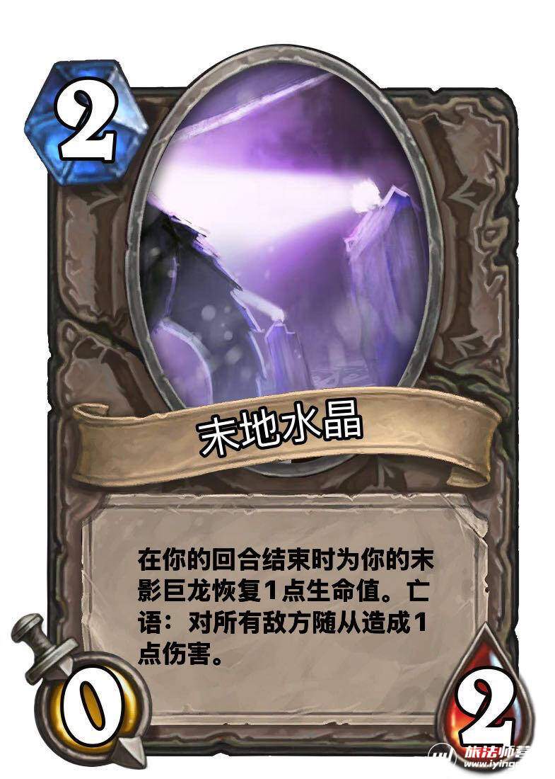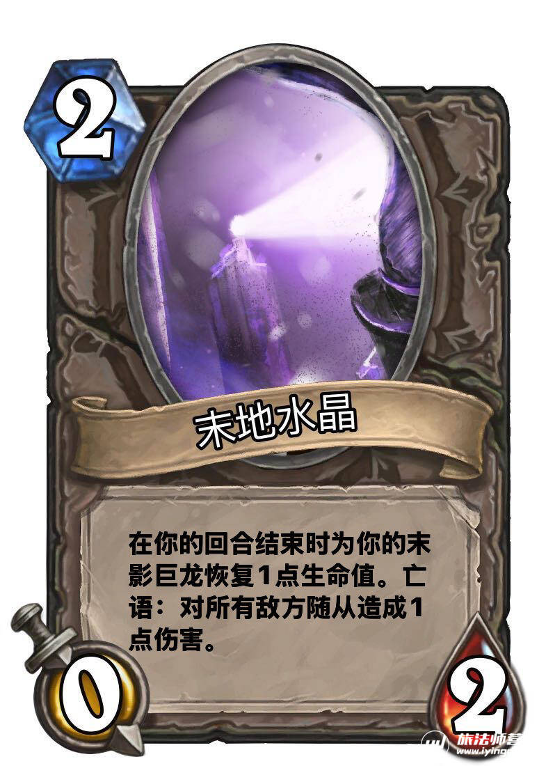 末地水晶:在你的回合结束时为你的末影巨龙恢复1点生命值。亡语:对所有敌方随从造成1点伤害。