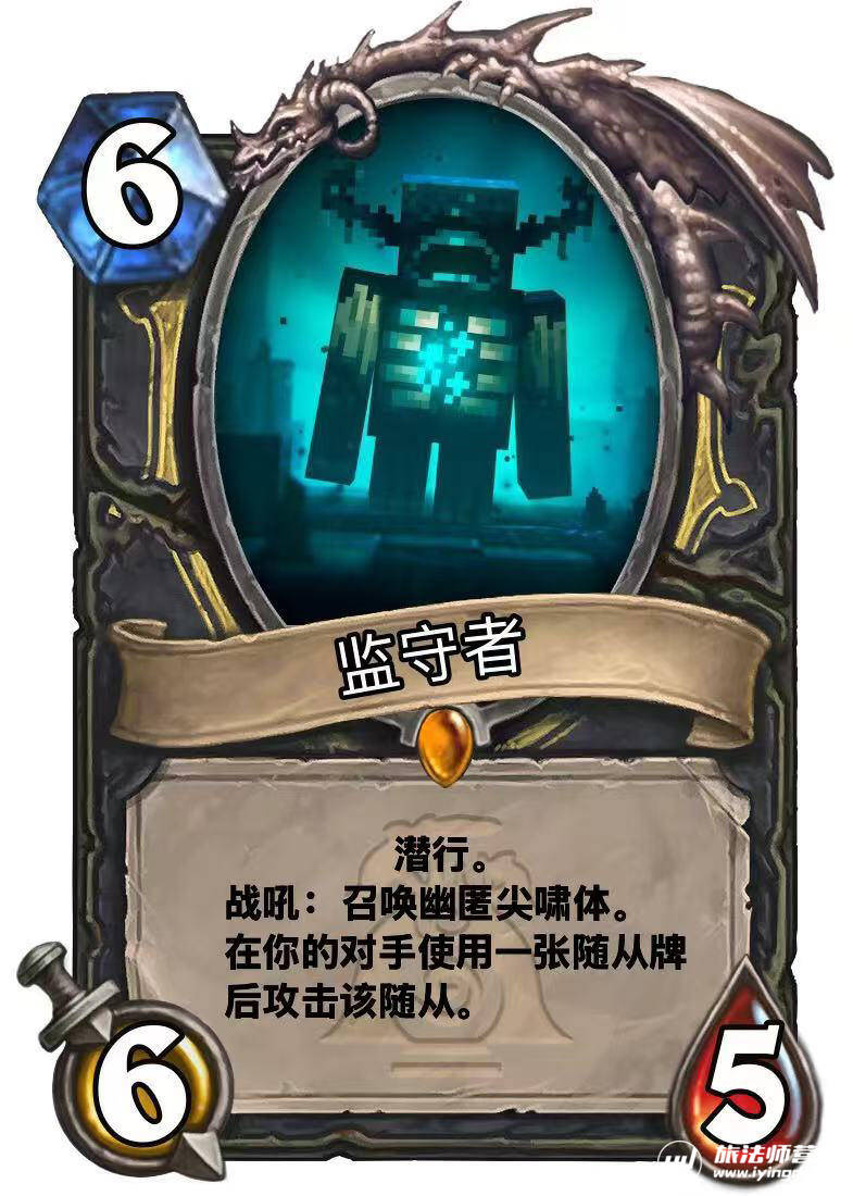 监守者:潜行。战吼:召唤幽匿尖啸体。在你的对手使用一张随从牌后攻击该随从。