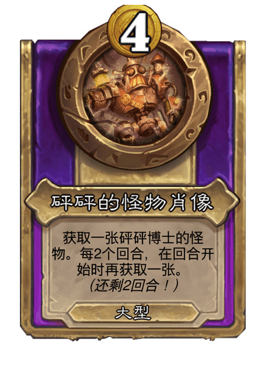 - [大型4费] 获取一张砰砰博士的怪物。每2个回合,在回合开始时再获取一张。