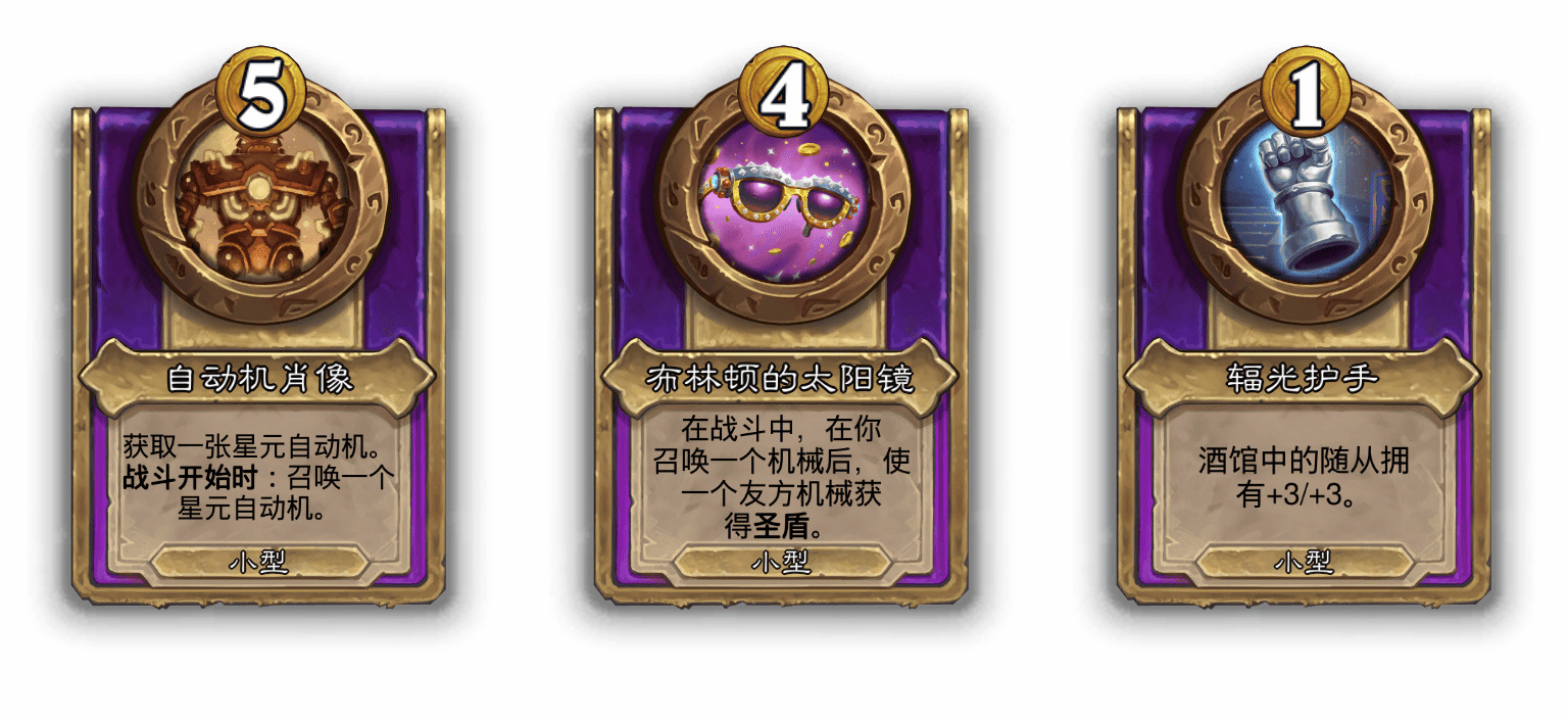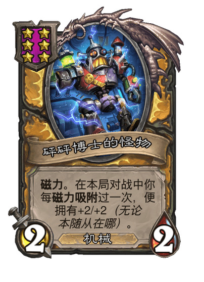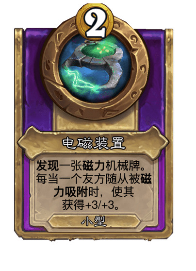 - [小型2费] 在你使用一张磁力随从牌后,随机获取一张酒馆法术牌。