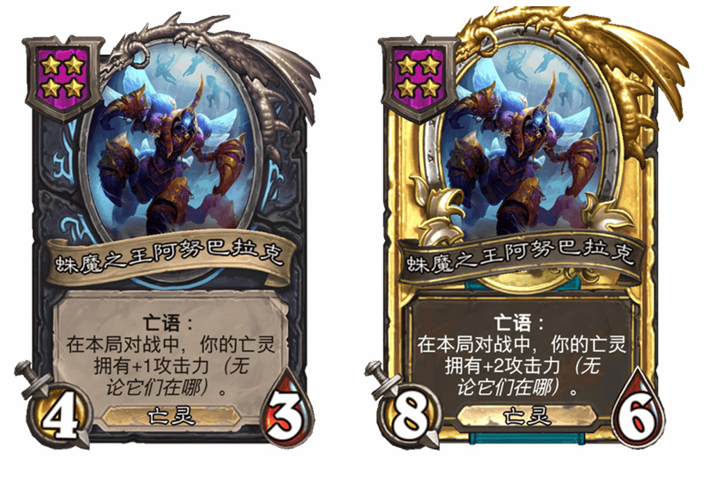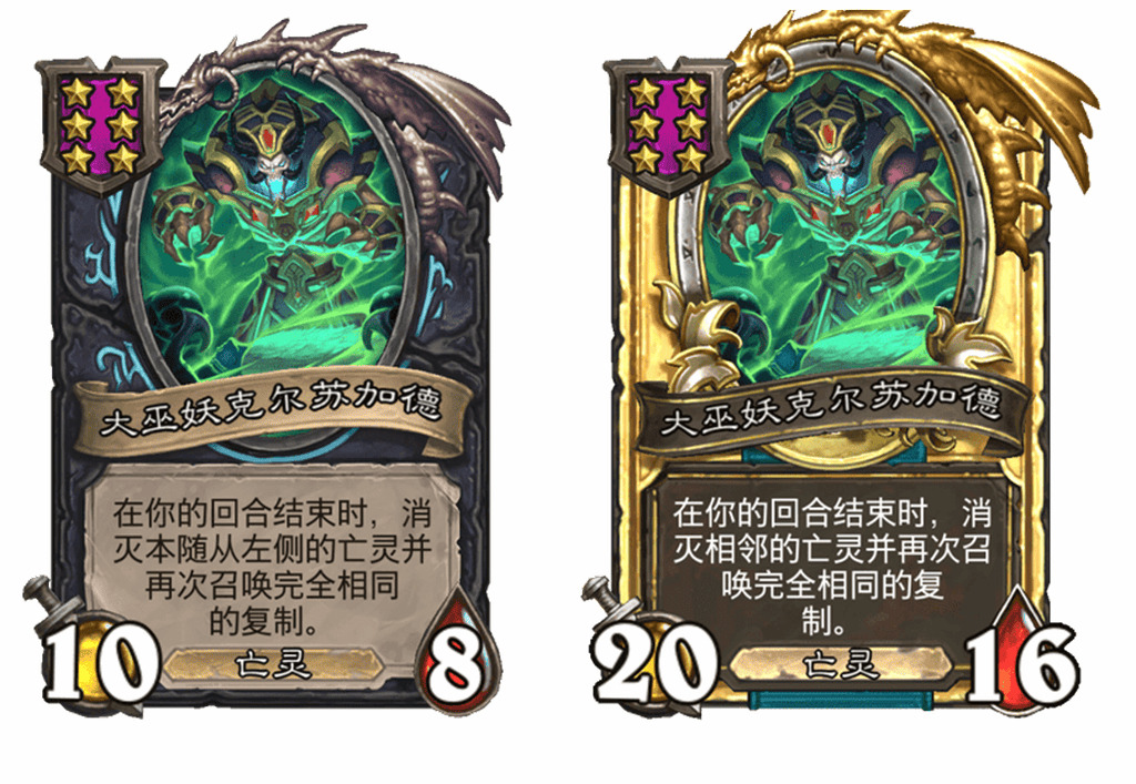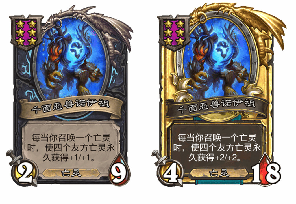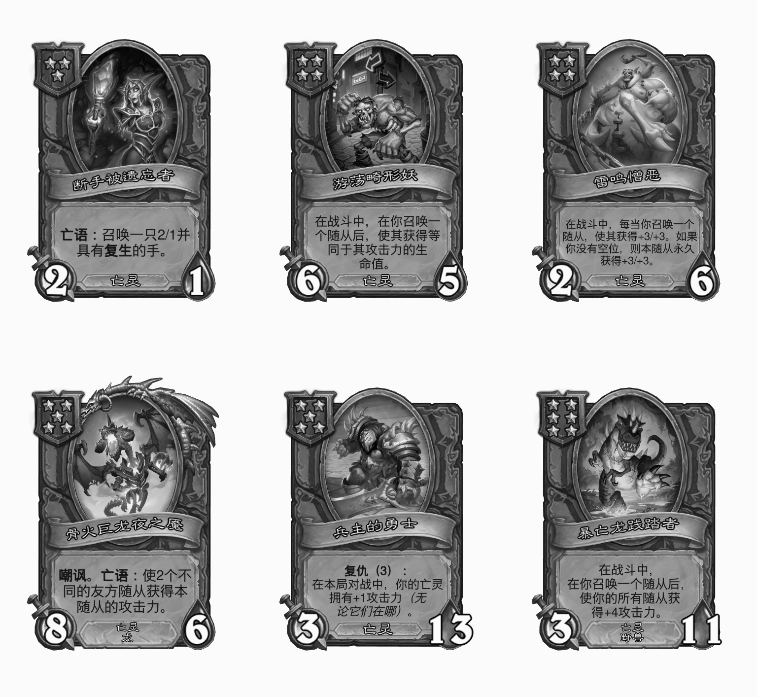 - [6星2/9亡灵] 每当你召唤一个亡灵时,使四个友方亡灵永久获得+1/+1。