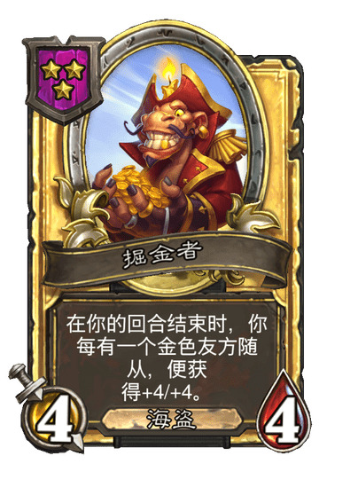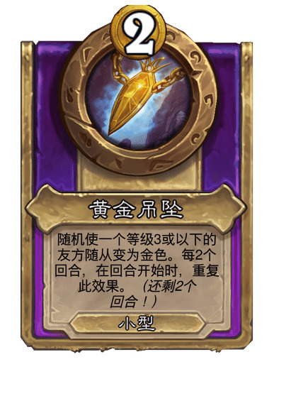 - [小型2费] 随机使一个等级3或以下的友方随从变为金色。每2个回合,在回合开始时,重复此效果。