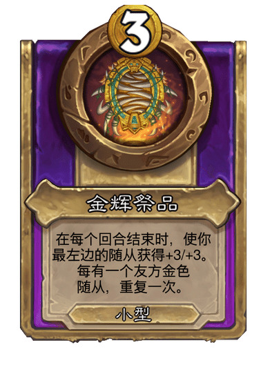 - [小型2费] 在每个回合结束时,使你的金色随从获得+3/+3。
