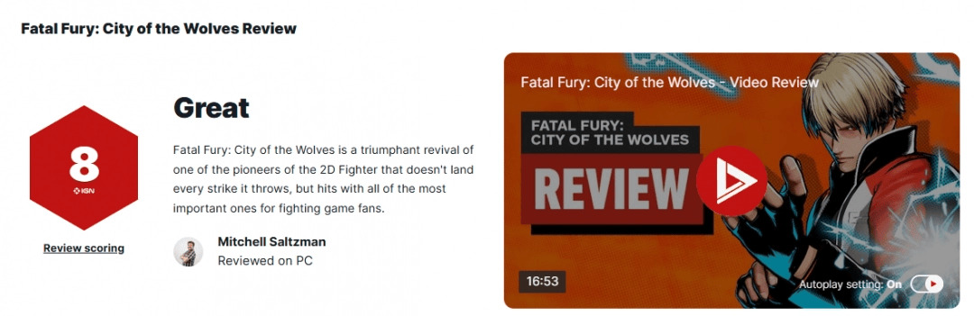 《饿狼传说:群狼之城》是SNK推出的一款备受期待的格斗游戏。游戏配置独特“美术风格”和“REV 系统”,提升战斗体验,还引入现代都市元素与开放世界探索机制,为玩家带来全新的格斗盛宴。目前,该游戏媒体评分已经正式解禁,其中知名外媒IGN为本作给出了8分的好评,媒体Gamingbolt 给出了7分的评价。