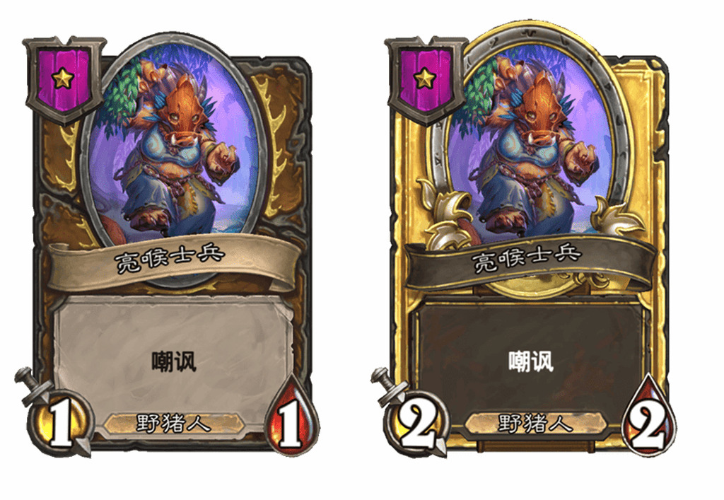 还有一点不算勘误但也顺便一提,亮喉督军的衍生物亮喉士兵在官网里可以查到2/2的金色版本,但经确认,那只能通过普通亮喉士兵在特殊情况下三连生成,金色亮喉督军亡语召唤的仍是普通的1/1士兵,描述没有错。