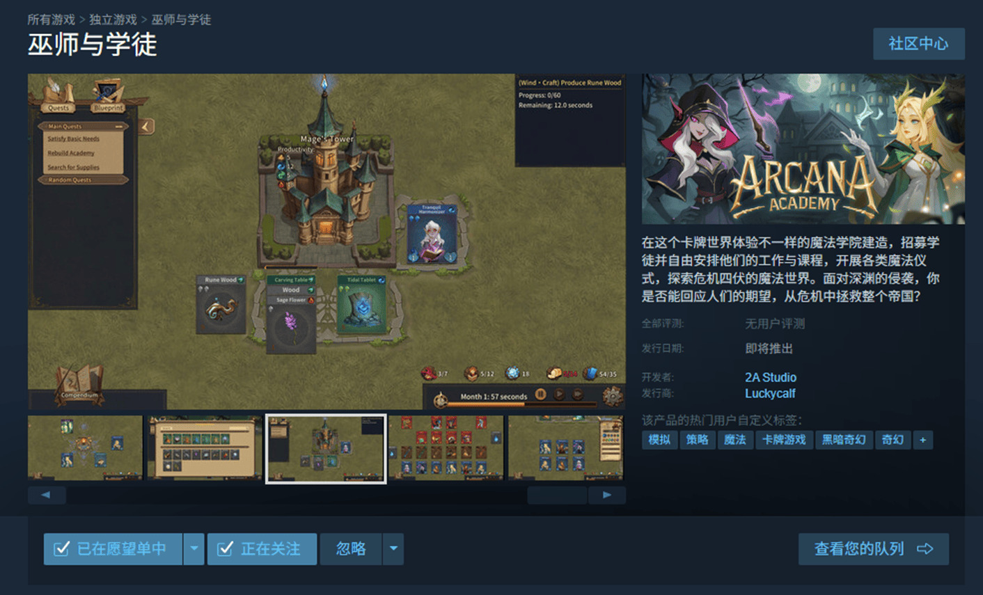 单机卡牌模拟经营游戏《巫师与学徒》Steam页面已公开,预计2025年内正式发售。