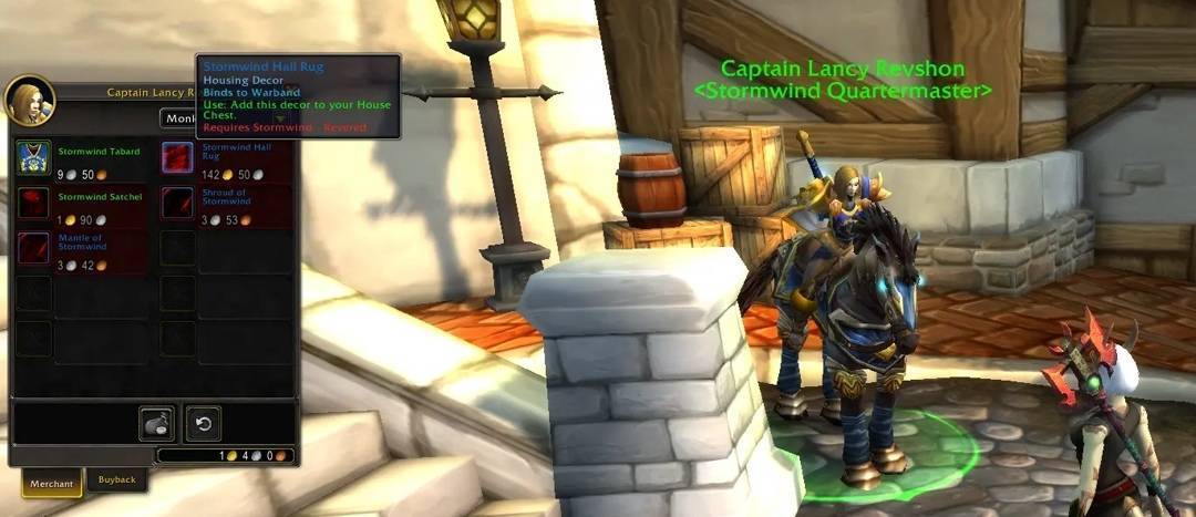 循序渐进的旅程原则意味着绝大部分的装饰类型(桌椅、床铺、书架等)都属于商品,可以直接从商人处购买、在拍卖行(小心剧透!)从其他玩家处购买,或者通过做任务等途径获取。你想要一把木头椅子,轻轻松松就能以低廉的价格弄到一把。