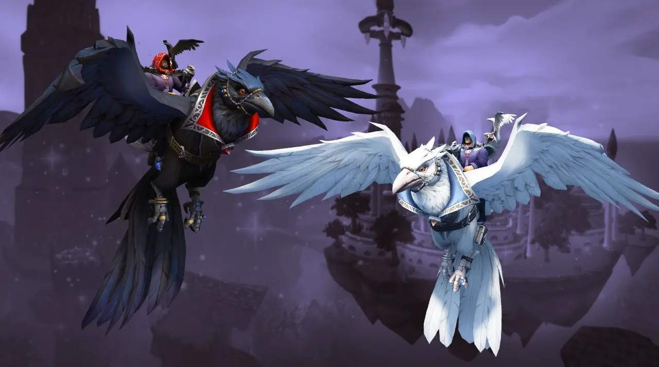 两只巨鸦坐骑和幻化套装可由现有和未来的所有《魔兽世界》正式服角色使用,坐骑会自动根据各个角色已经学会的最快骑术进行调整。如果角色的等级不足以使用飞行坐骑,巨鸦也可用作地面坐骑。