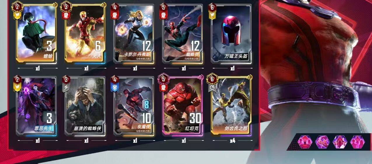 3费:界夜魔侠,过度极其舒服的卡,如果没有建议换红斗篷,一张即可。如果红斗篷战力不高,来别的卡了最好换掉。