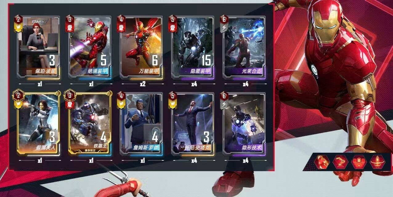 5费:隐匿装甲1张即可,带4张防被撕。如果前期隐匿战力够高,可以不卖,配合后面打激光。托尼,经济卡,无需多言,如果场上站位紧张,不用强行4星。