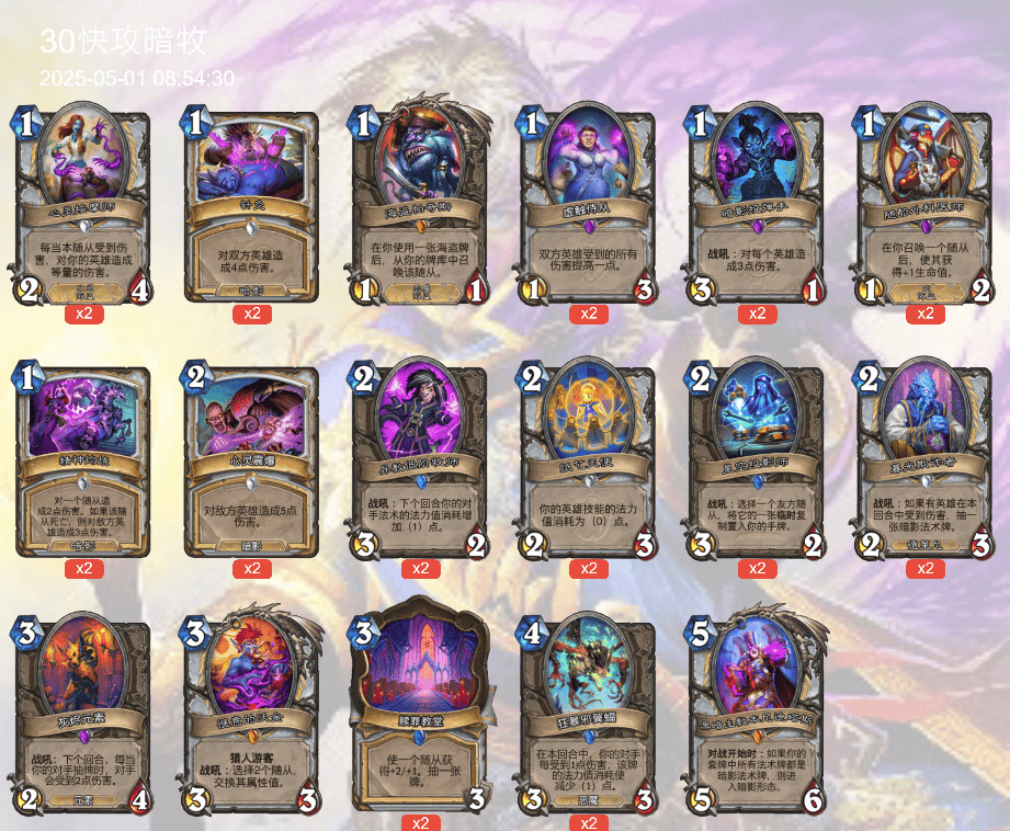 驴子网 全服传说前1000分段 卡组数据 (微信小程序HS卡牌大师)