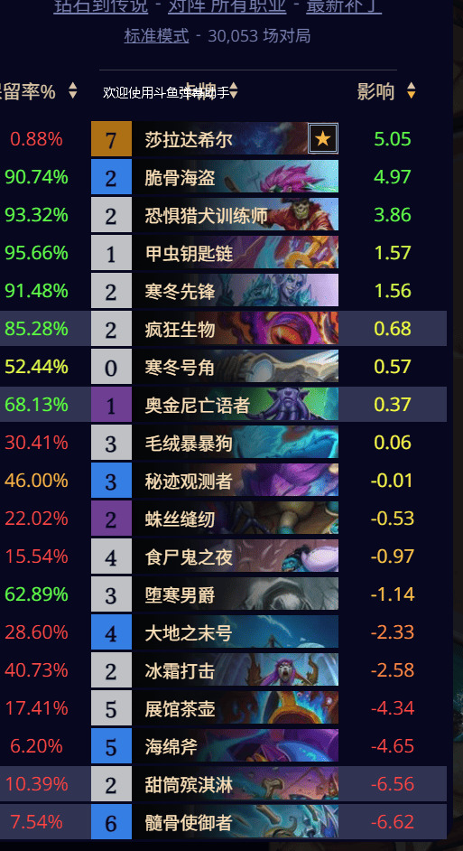 术士我遇到的两个都是轮盘术,没遇到星舰术。轮盘术没什么随从,解了场也挡不住咱们用伤害打脸,大优势对局。环境里星舰术也比较多,不过我打的局数较少没遇到,估计会难打一些,毕竟存在发射之后吸一大口的可能。