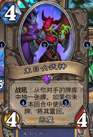 今天打天梯,我是一位小鸡灌注德,对面也是一位小鸡红DK。然后他开鸡蛋了,抽了两张“末日女武神”,一张偷了我的法师3费地标