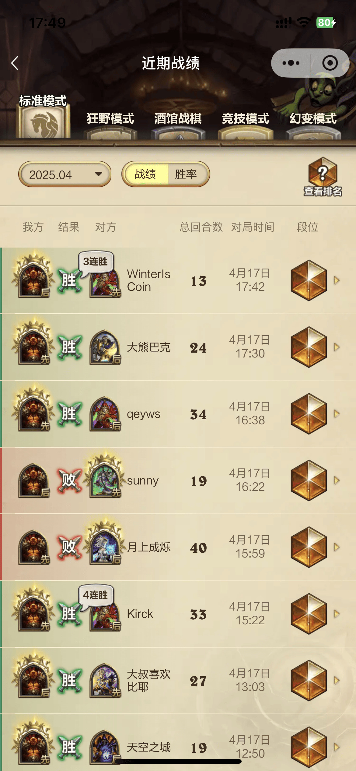 战绩截图