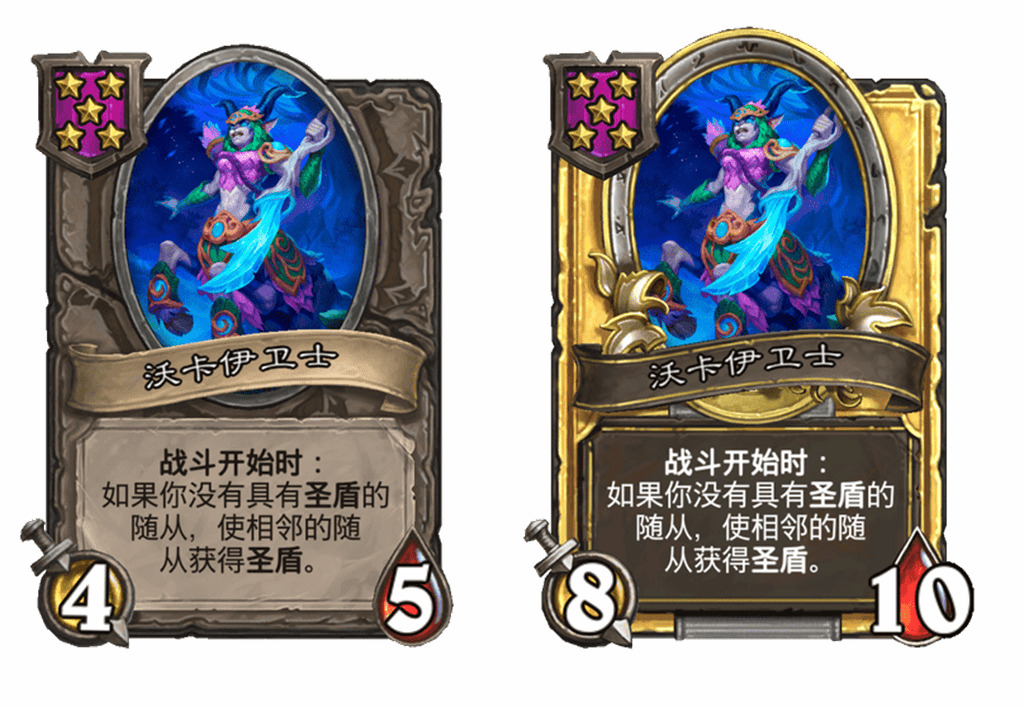 - [4星5/5] 圣盾。你的能使随从获得属性值的酒馆法术额外获得+1/+2。