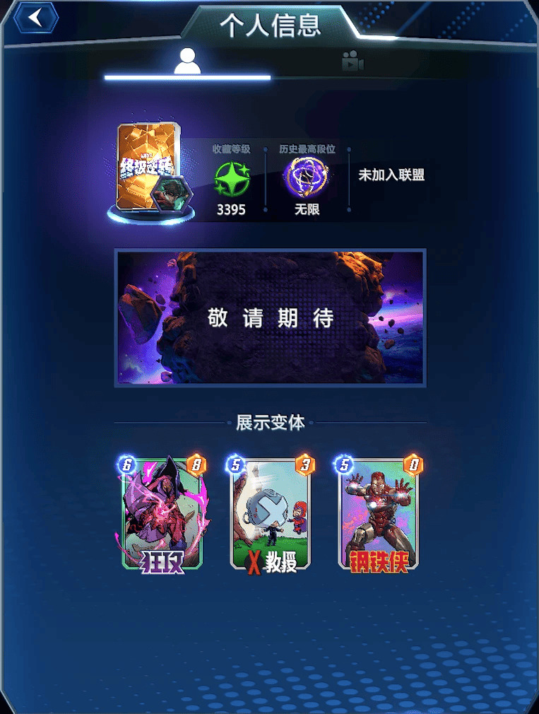 4.个人信息 S9 赛季中,我们对个人信息系统进行优化升级。探员们在个人信息页面看到收藏等级、段位等个人信息,还新增了【展示喜爱变体】功能。可自行挑选 3 个最喜爱的变体,将其展示于个人信息页面。