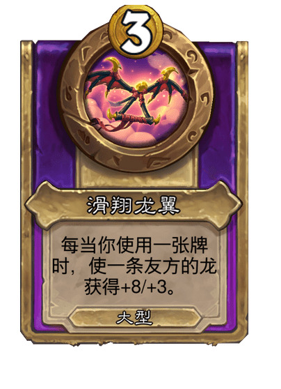 - 新:[2费] 每当你使用一张牌时,使一条友方的龙获得+3/+1。