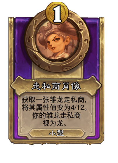 - 新:[1费] 获取一张雏龙走私商,将其属性值变为4/12 。你的雏龙走私商视为龙。