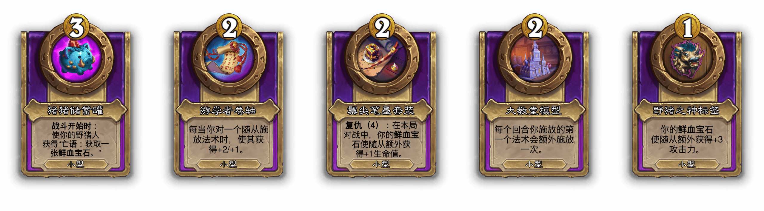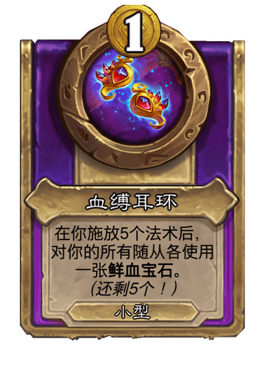 - [小型1费] 在你施放5个法术后,对你的所有随从各使用一张鲜血宝石。