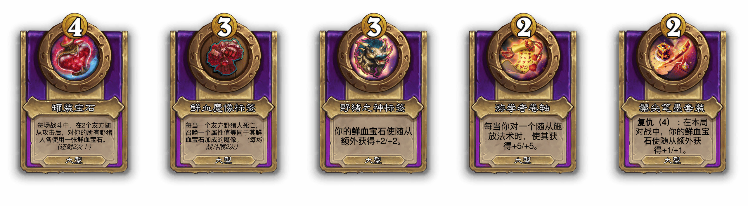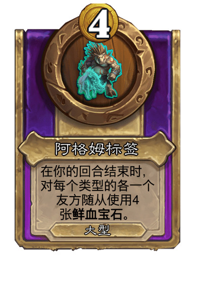 - [大型4费] 在你的回合结束时,对每个类型的各一个友方随从使用4张鲜血宝石。