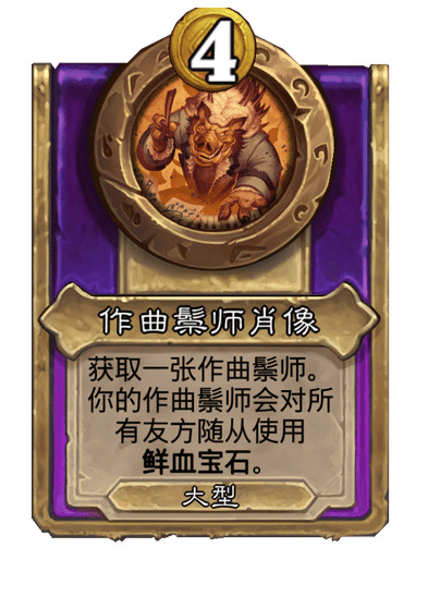 - [大型4费] 获取一张作曲鬃师。你的作曲鬃师会对所有友方随从使用鲜血宝石。