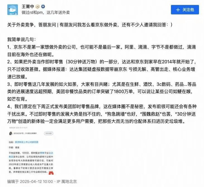 甚至美团核心本地商业CEO王莆中还在社交媒体上,和刘强东隔空打起了口水仗。