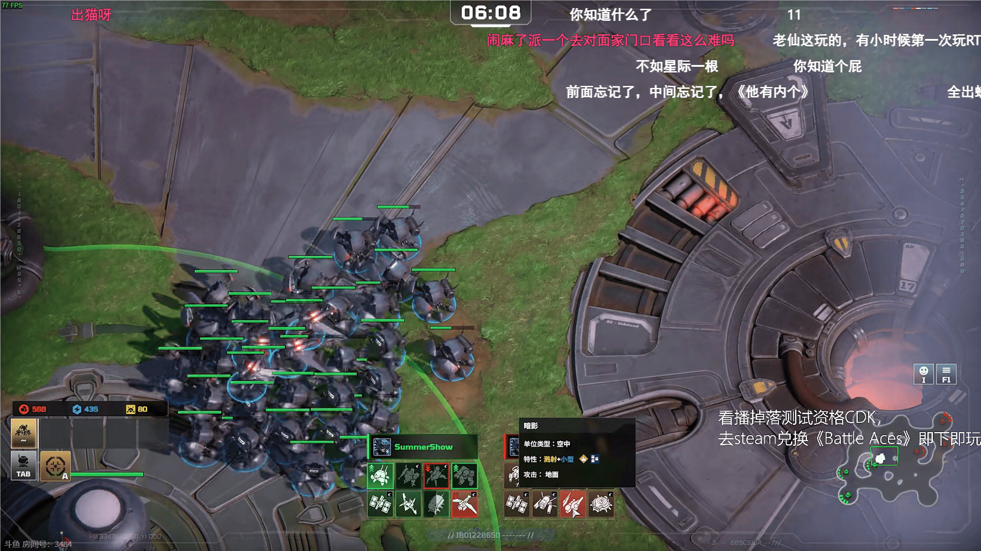 自从上周在某鱼看五分钟直播领了个cdk,玩了两天,平均就6-7分钟一把,有一说一自动收集资源真的爽,省掉了好多繁琐操作,对我这种新手RTS玩家很友好,不过还是缺了一点新模式和新兵种,感觉要公测才会更完善,手上有点cdk,评论随机送.