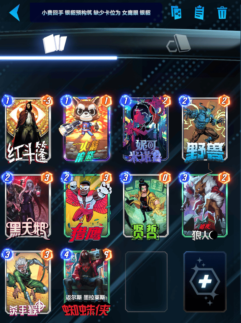 这套小费回手卡组携带了狼人,在狼人触发效果移动后可以将迈尔斯减到1费。