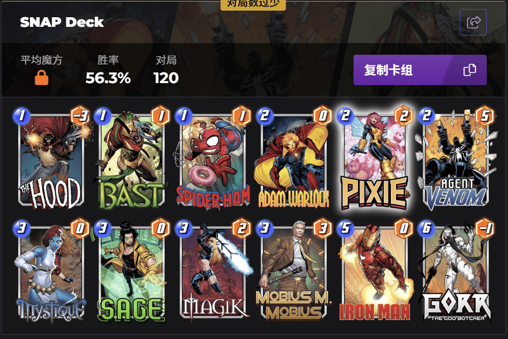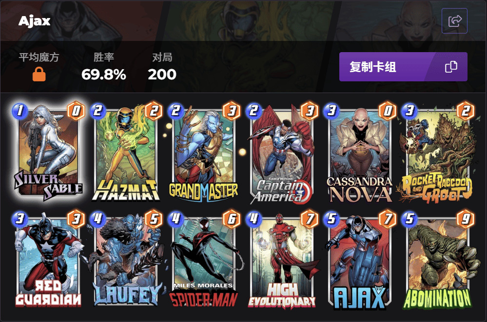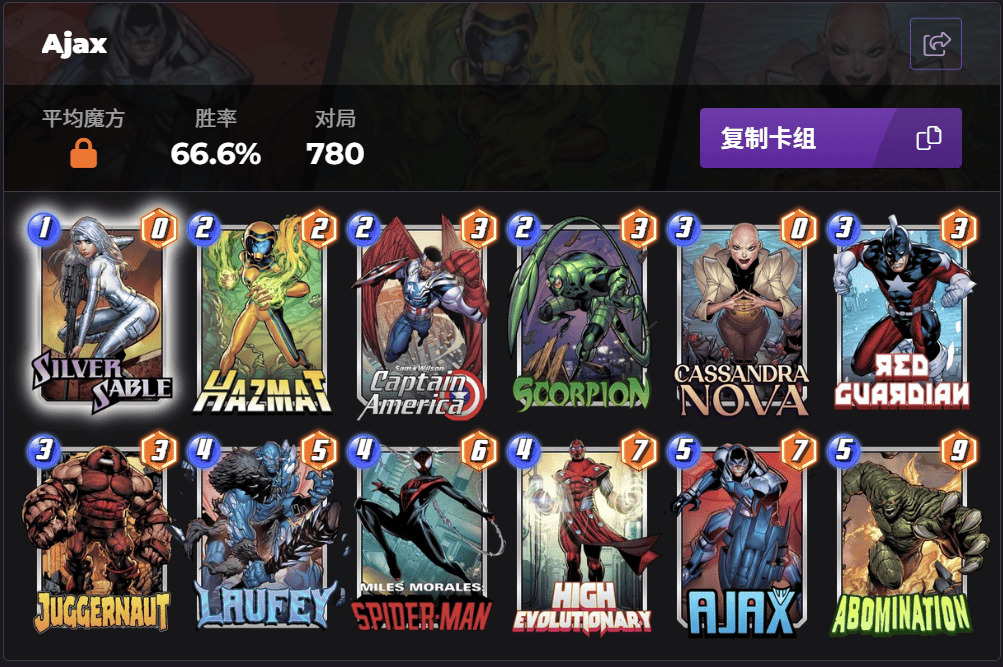 猩红蜘蛛这张卡自国际服发布以来好像一直就没掀起什么波浪,我查到国际服携带他的卡组出场数都是少的可怜...我一直相信国服玩家拥有无穷无尽的创造力,希望有大神可以在卡组百花齐放的国服环境中拯救这张...额...娱乐卡?
