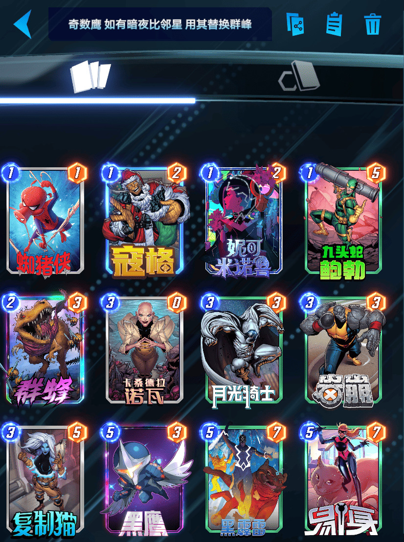 在这里推荐一套我之前玩塞垃圾两次输给 某站UP@啊彬ABINNN 彬哥的奇数鹰卡组(因为我没有暗夜比邻星所以暂时用群蜂替代):