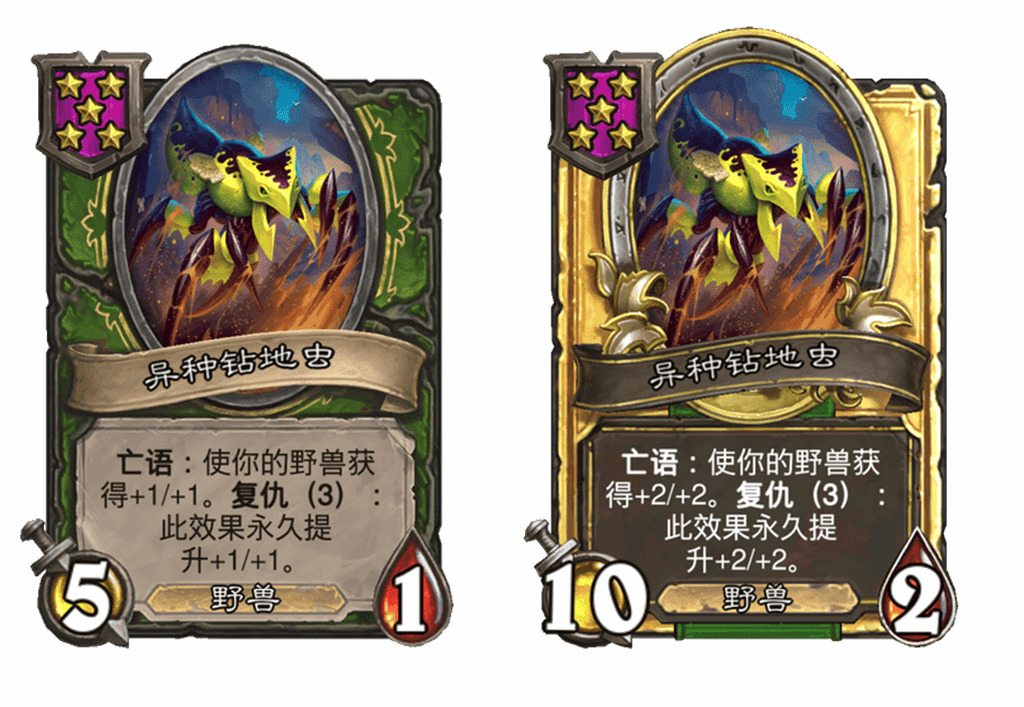 - 新:[5星5/1] 亡语:使你的野兽获得+1/+1。复仇(3):永久提升+1/+1。