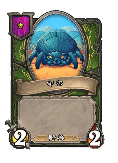 - [6星7/3野兽] 在本随从获得攻击力后,在本局对战中,你的甲虫拥有+2/+2。亡语:召唤一只2/2的甲虫。