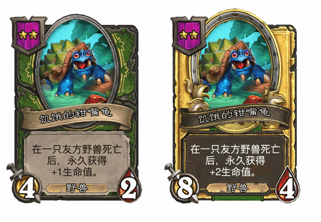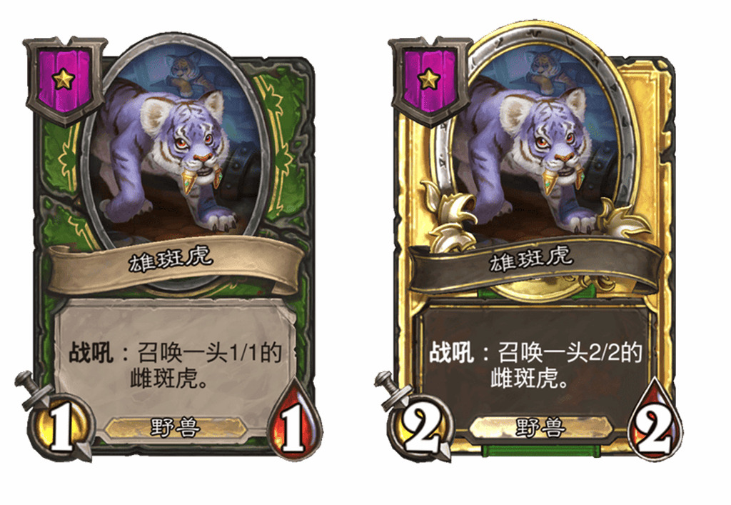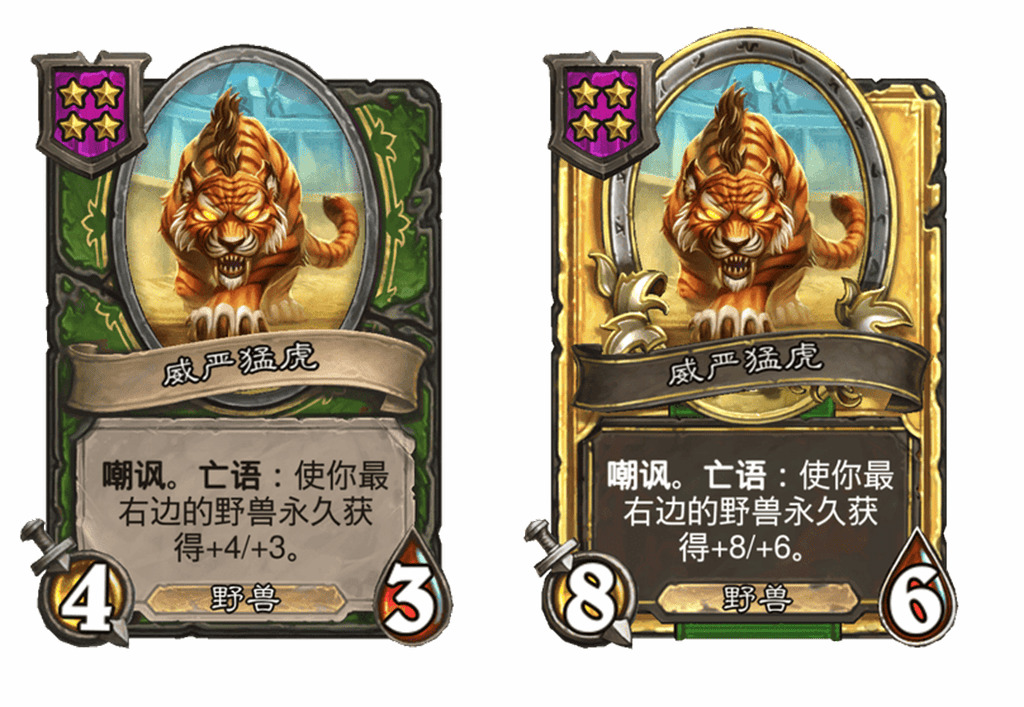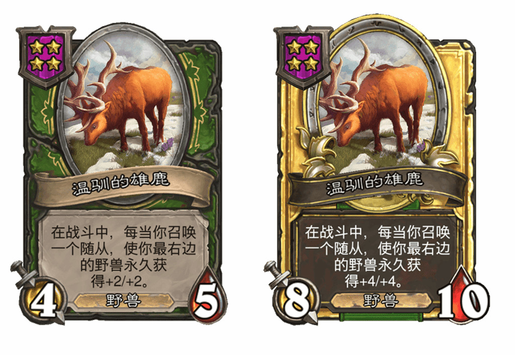 - 新:[4星4/5] 在战斗中,每当你召唤一个随从,使你最右边的野兽永久获得+2/+2。