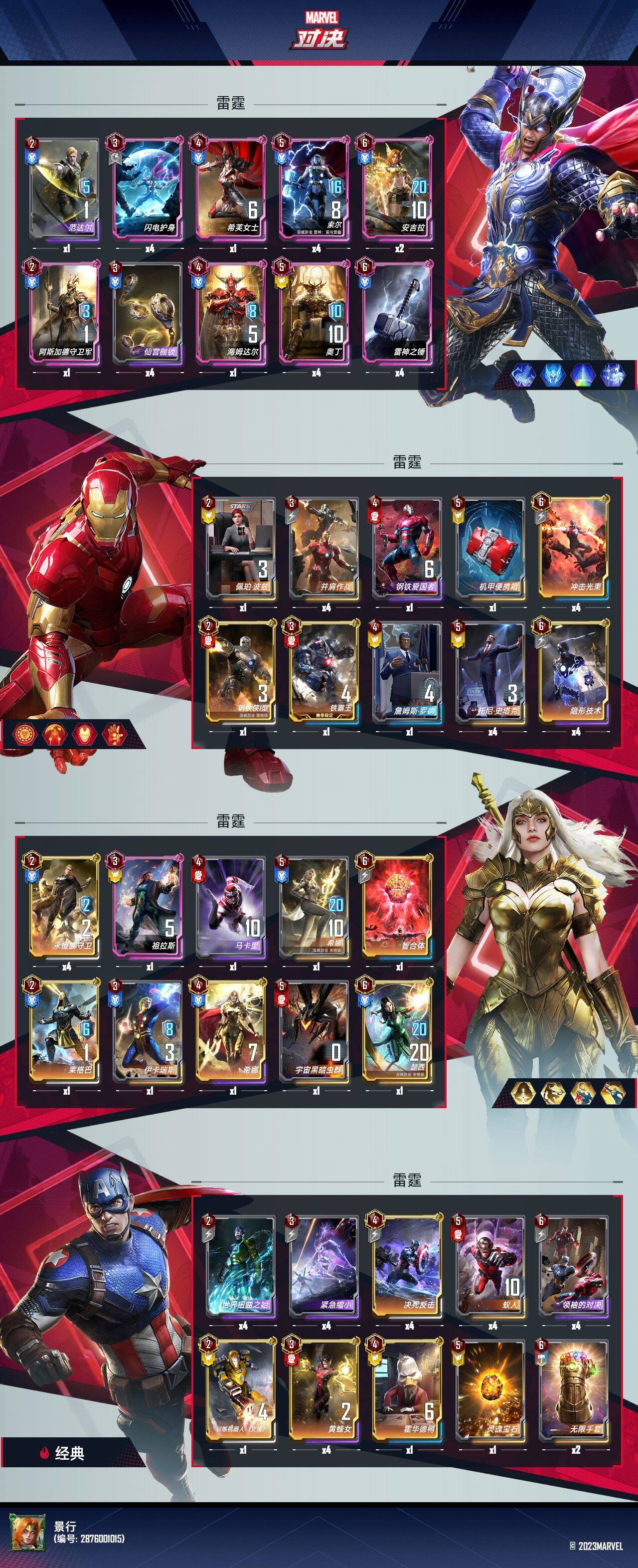 雷霆在测试服就被评价为“值得氪”“强度在线”,上线初实战对局中会发现,它的强度并没有脑测中的那么夸张无解。首先,“无限坚甲”这个概念,在实战中是做不到的,往往莫名其妙被打开缺口;其次,“打击召唤卡组”,实际效果上也有一些弊端,打不了大身材召唤,对抗【精灵洛基】会出现一些鬼畜的画面;然后,“禁止起飞”,破坏新惊、惊队、蚁人链接等离场效果,这点也是做不到的。最值得吐槽的,专武【雷神之锤】实在拉跨,异界【武库】简直鸡肋。而且,实战中能明显感到,速本打法,稳定性不足,经济压力巨大;难以对抗大身材卡组、机制卡组,中等数值显得有点鸡肋。