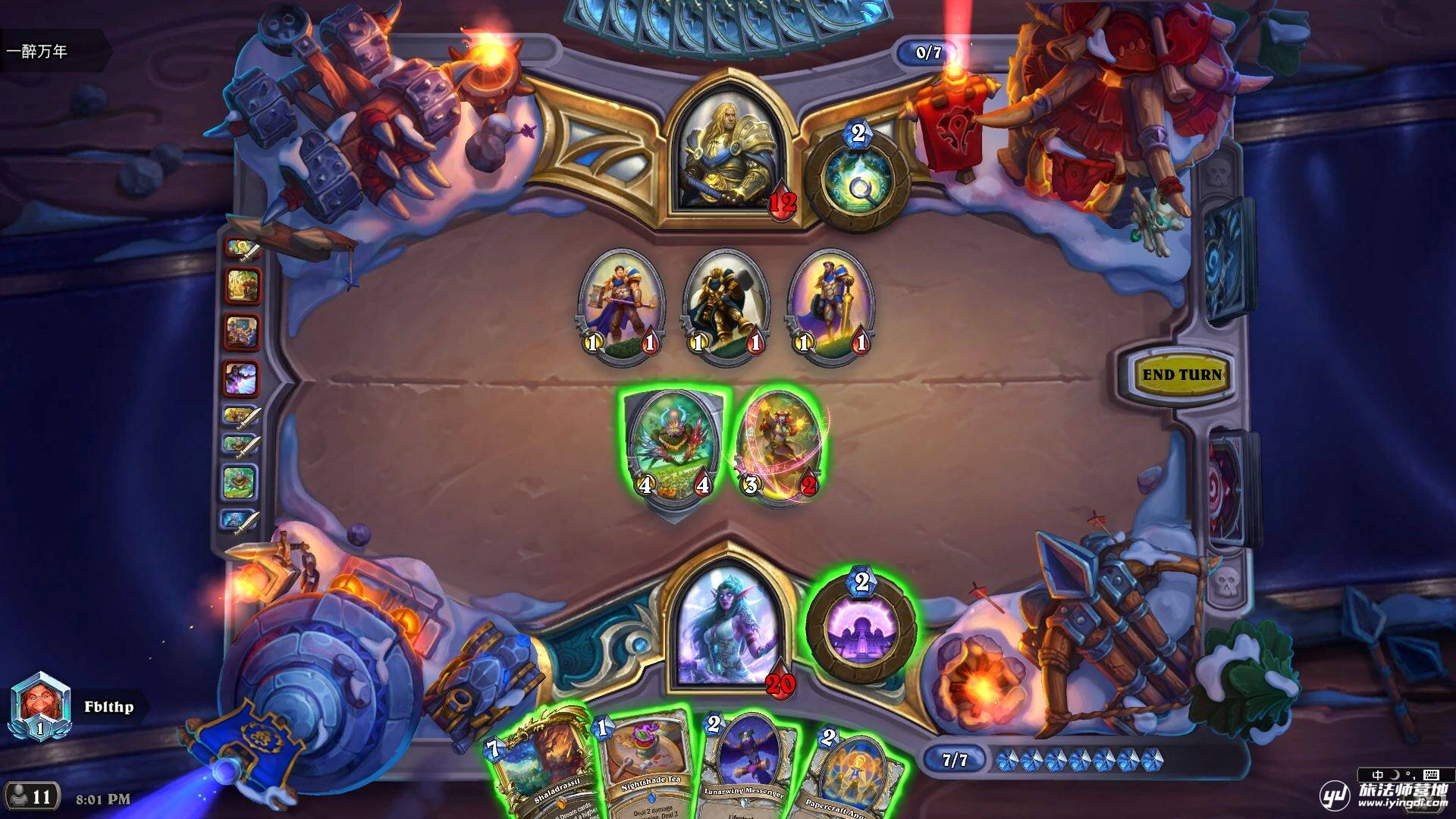 茶壶:buff是真的厉害,不太容易同时buff到3个人,并且前期非常卡手,算是这套牌里最卡手的了,但是效果也是真的强,经常强势站场让对面解不干净,或者直接+9攻直接抢死对手(有一局5费抢死一个术士);