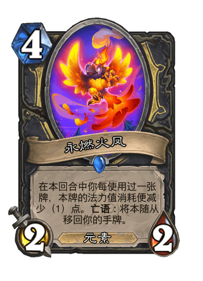 在本回合中你每使用过一张牌,本牌的法力值消耗便减少(1)点。亡语:将本随从移回你的手牌。