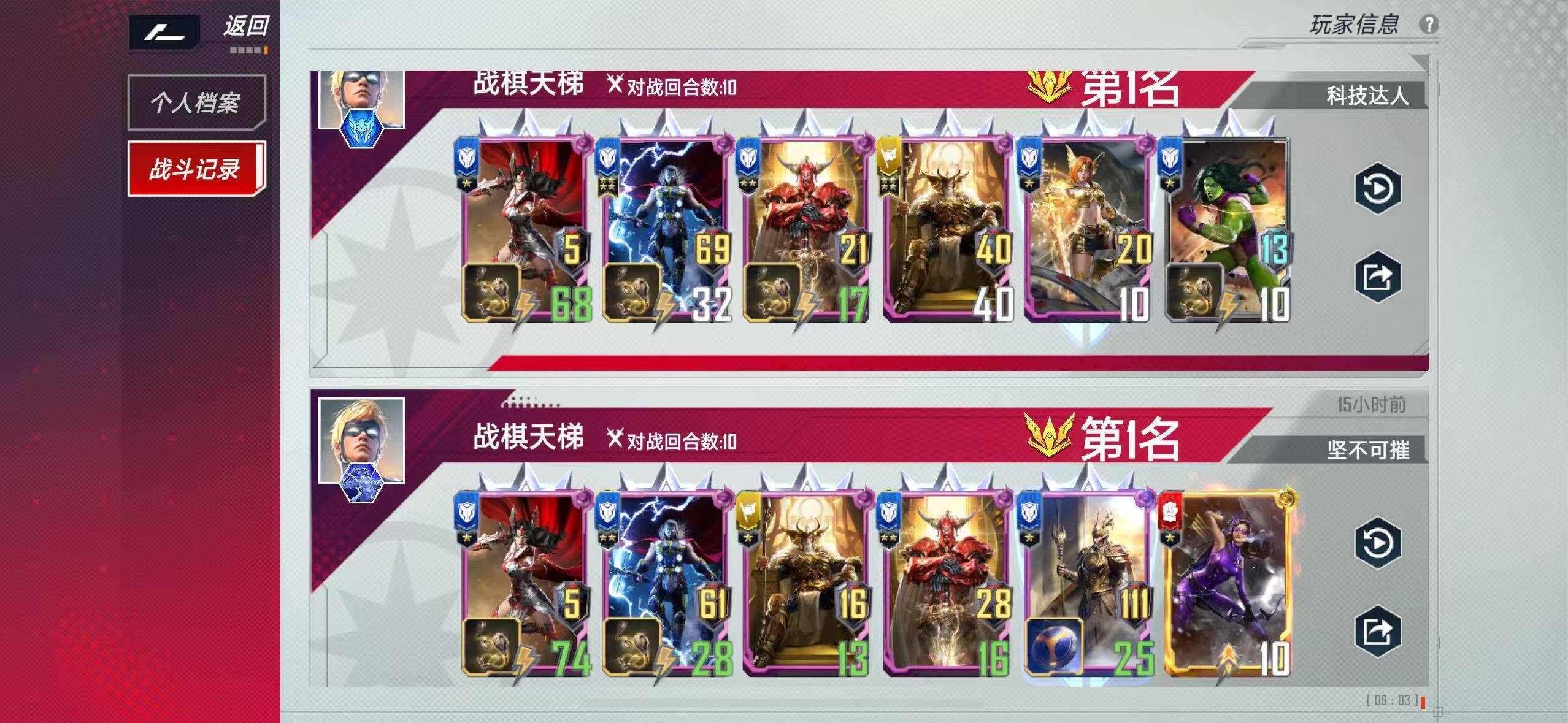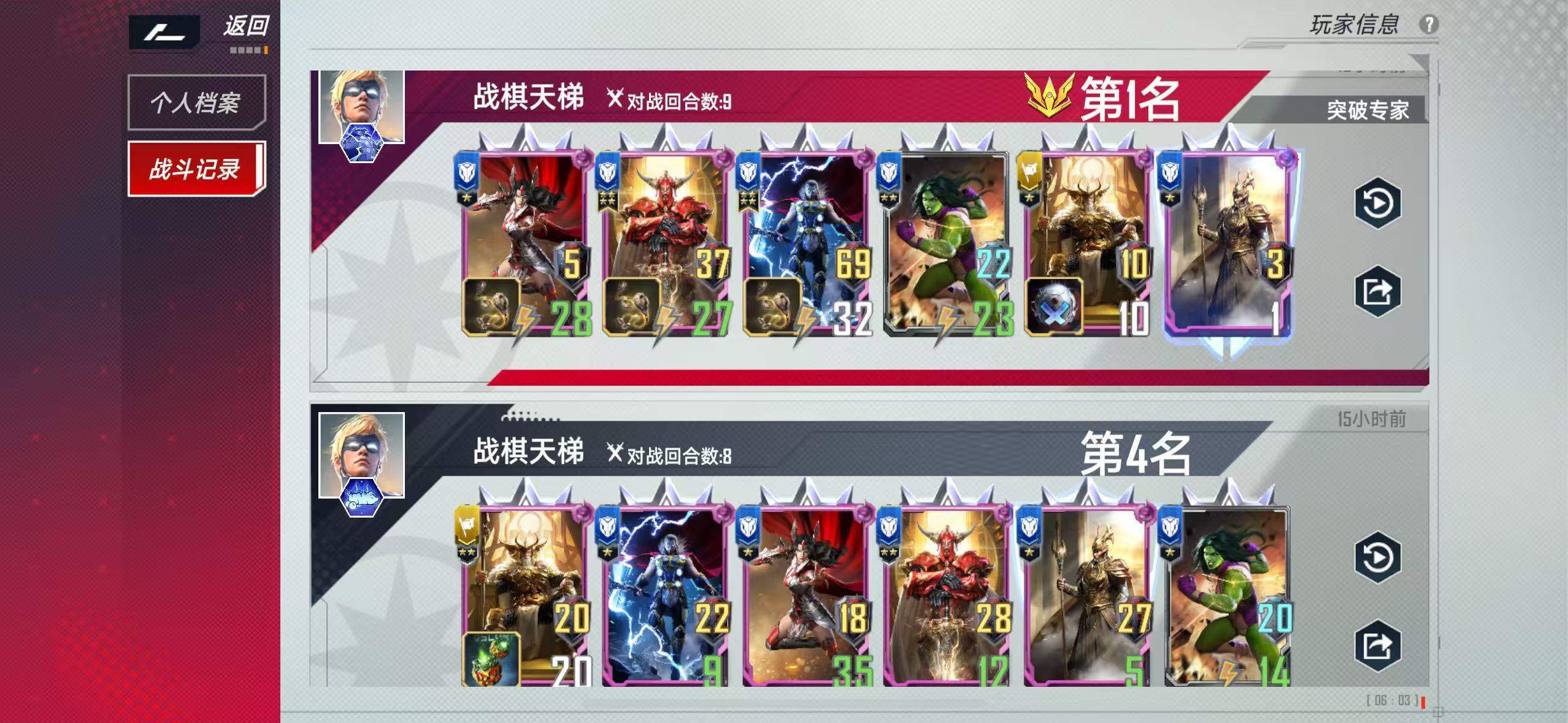 这几场是我从大师3一路上王的战绩,除了碰到4回合成型5回合抬人的“畜生”鹰眼,赢的概率还是很大的。