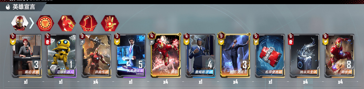 铁人技能选择:优先选择斯塔克制作 这套卡组需要屯钱 才能做到开满博士 不然经济过于拉跨