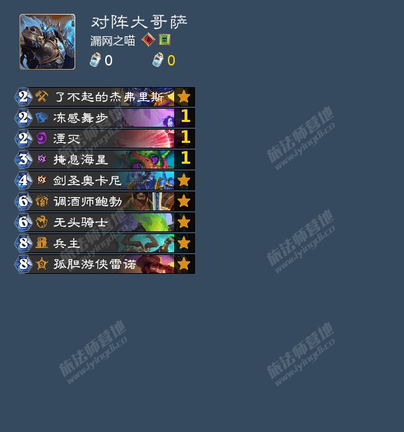大哥萨,小优,因为我们前期有随从上,所以大哥萨展开那一拨往往需要处理我们的场面,然后不论他3费还是4费启动,如果没有先祖之魂,那不论是耐普图隆还是不移山丘,我们都是能解掉的,我们有姐夫、湮灭、无头骑士这样的单解,如果是奔雷骏马或者是贴了先祖之魂的风怒怪,马可以不用管它让它踢几脚没关系,风怒怪可以姐夫解或者鲍勃冰拖回合,拖到八费的兵主和神雷诺处理,一般大哥萨如果34费启动的话,是不太有费用贴亡者的,基本上就是贴个转生,场面压力我们都是可以处理的。需要注意的是姐夫不要去找成长,最好是留着解场用。
