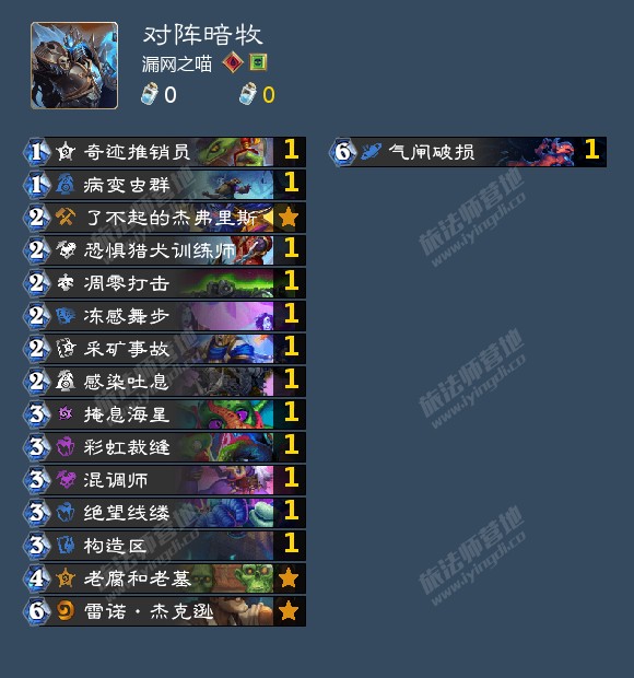 暗牧,dk打暗牧基本上都是优势的,不论30暗还是40暗,前期有采矿事故,构造区,姐夫,凋零打击,感染吐息,麦芽糖浆,彩虹裁缝,老腐和老墓等等的节奏卡,中期有气闸破损,雷诺一击绝杀,基本上算是很优势的,不过后手会比先手打吃力许多。