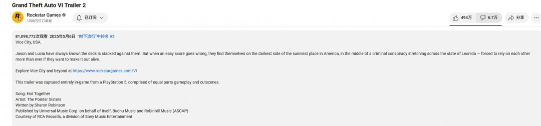 Rockstar Games再次确认,《GTA6》第二支预告片是在PS5上录制的。