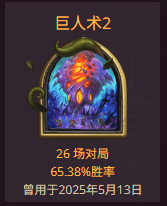 巨人配合魔化形态+扫帚\意志熔炉等卡,可以实现11/11突袭过墙并提脸的斩杀,实战中也经常能打出来,玩这个卡组为的就是巨人打脸撞的屏幕震动的爽感!